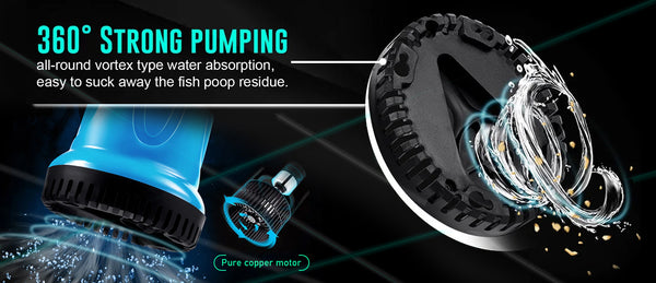 Operate this versatile water pump with peace of mind due to the durable shell, efficient motor design, and built-in temperature-control chip. Your pump will never exceed maximum heat limits, thereby ensuring safe operations and extended service life. Whether utilized in an aquarium, pond, fountain, or other creative watering use, your pump will run quietly while saving energy and providing adaptability.